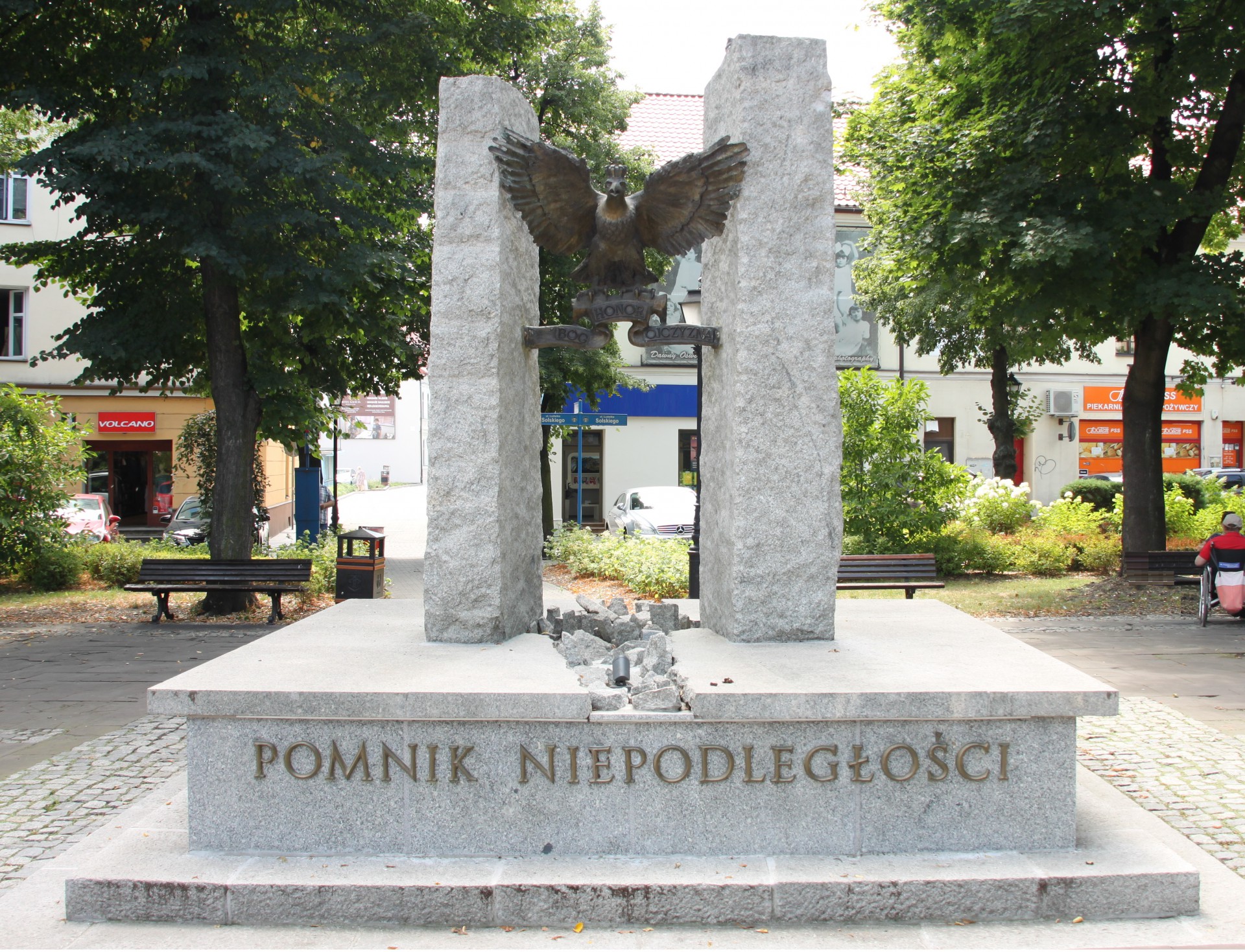 Pomnik Ku Czci Odzyskania Niepodległości przez Państwo Polskie. Odsłonięty 11.11.1998r – inicjator: Józef Janeczko (Towarzystwo Miłośników Ziemi Oświęcimskiej.