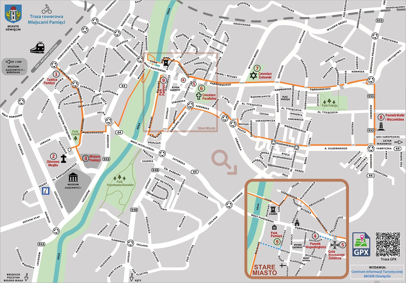 Korzystając z przygotowanego przez Centrum Informacji Turystycznej śladu GPX, każdy rowerzysta może samodzielnie pokonać 12 km tematyczną trasę rowerową, wiodącą w pobliżu dziewięciu miejsc, związanych z historią miasta, upamiętniających ofiary okresu dwóch Wojen Światowych. Trasa przebiega również w pobliżu trzech miejskich parków – Parku Zasole, Parku Pokoju, oraz Bulwarami nad rzeką Sołą.